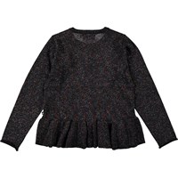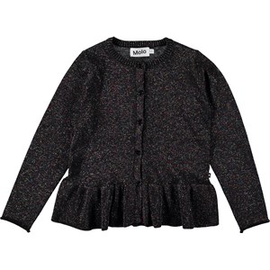 Gulia is a black cardigan with multi-coloured glitter. Gulia has a button closure and a peplum.