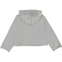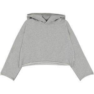 Maddy is a cropped sweatshirt in grey. The sweatshirt has a hood and is in a comfortable, wide fit.