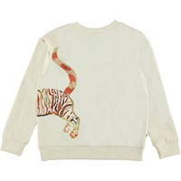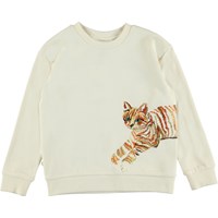 Maila is a light coloured sweatshirt with a cat embroidered on one side. The sweatshirt has rib at the neck, sleeves and bottom.