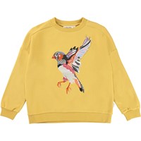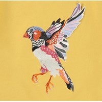 Mandy is a yellow sweatshirt with a beautiful embroidery of a bird on the front.