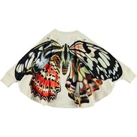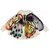 Spread out the butterfly wings on the Marcella poncho, which is white with long sleeves and a butterfly print on the front and back.