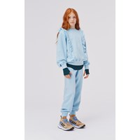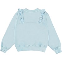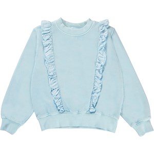Marcia is a light blue sweatshirt with lovely ruffle edges at the front.