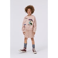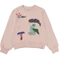 Pink sweatshirt with a mushroom embroidery that shows happy mushrooms having fun. They are having a funky party, or should we say a "fungi" party? This sweatshirt is in 100% cotton, has a round neck with a rib edge, rib at the sleeves and bottom and is in a regular fit.