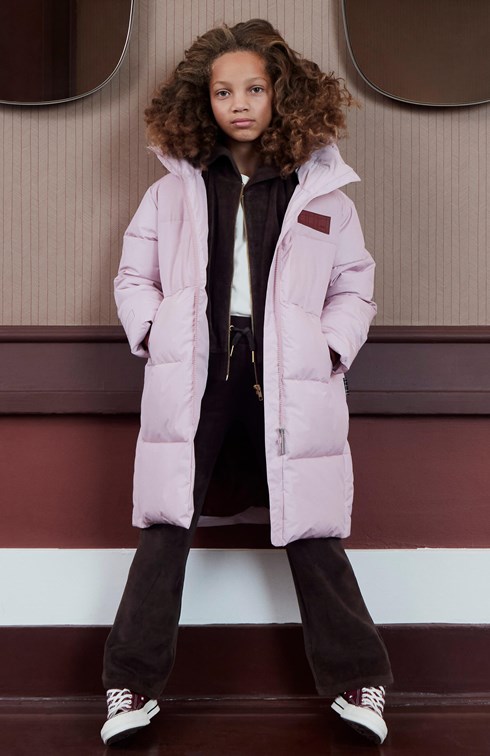 Milla is coral coloured velour hoodie. It has a zip closure and pockets on the front. Wear the hoodie with the matching trousers.