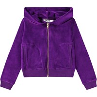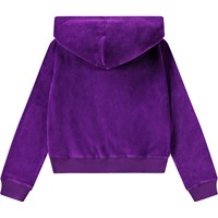 Purple cardigan in a soft velour. The cardigan has a regular fit and a zip, hood, ribbed edges, and side pockets. You can pair the cardigan with matching trousers to create a complete and comfortable velour set.