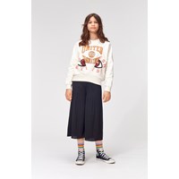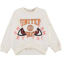 Mille is a cream coloured sweatshirt, where the front is a combination of two Molo prints. It is shorter in the front than the back.