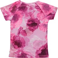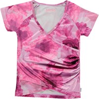 Oaklee is a wrap front t-shirt in a rose coloured floral print that can be an everyday top or used for sports. The t-shirt has a wrap-around effect and short sleeves. Oaklee is part of Molo's sports collection, which helps integrate sports and fashion. The top is comfortable and constructed in technical materials that make it wearable for down time as well as intense activity. Molo’s sports collection is created with a unique, high performance technology called HeiQ Smart Temp, which supports the body's own ability to cool down. The cool down function is activated when the body gets warm and sweaty. It is deactivated when the body has cooled down. HeiQ Smart Temp ensures optimal comfort and performance. It has been independently tested to ensure that it is safe for the skin.
