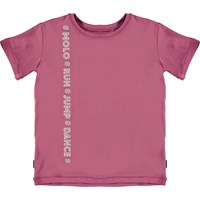Olinka is a pink sports t-shirt with a text print on the front. The t-shirt is part of Molo's sports collection, which helps integrate sports and fashion. The t-shirt is comfortable and constructed in technical materials that make it wearable for down time as well as intense activity. Molo’s sports collection is created with a unique, high performance technology called HeiQ Smart Temp, which supports the body's own ability to cool down. The cool down function is activated when the body gets warm and sweaty, and then turns off when the body has cooled down. HeiQ Smart Temp ensures optimal comfort and performance. It has been independently tested to ensure that it is safe for the skin.