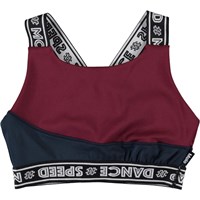 Olivia is a short top in black and bordeaux that has wide straps with a text print. Olivia is part of Molo's sports collection, which seamlessly unites sports and fashion. The top is comfortable and constructed in technical materials that make it appropriate for both intense activity and relaxed moments. Molo’s sports collection is made with a unique, high-performance technology called HeiQ Smart Temp, which supports the body’s natural ability to cool itself down. The cooling function is activated when you are warm and sweating. The cooling function becomes deactivated when the body has cooled down. HeiQ Smart Temp ensures optimal performance and comfort. Independently tested for skin safety.