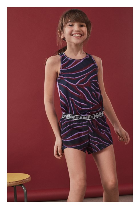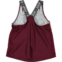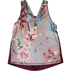 Oriana is a top in a floral print with a bordeaux back and wide straps with text. The top is part of Molo's sports collection, which seamlessly unites sports and fashion. The top is comfortable and constructed in technical materials that make it appropriate for both intense activity and relaxed moments. Molo’s sports collection is made with a unique, high-performance technology called HeiQ Smart Temp, which supports the body’s natural ability to cool itself down. The cooling function is activated when you are warm and sweating. The cooling function becomes deactivated when the body has cooled down. HeiQ Smart Temp ensures optimal performance and comfort. Independently tested for skin safety.