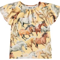 Rachel is a wonderful t-shirt with wide, feminine sleeves and a round neck. The t-shirt is in a yellow horse print.