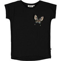 Ragnhilde is a black t-shirt with really short sleeves and an embroidered butterfly on the chest. The t-shirt is 100% cotton.