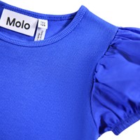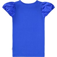 Blue fitted T-shirt made of soft organic cotton rib with round neck and puff sleeves.