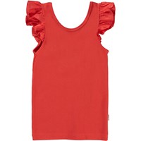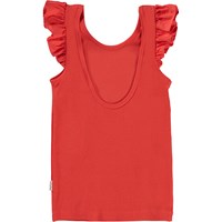Ranja is a vest in red that can elevate any outfit. With its lovely poplin ruffle on the shoulders, Ranja is perfect for parties and everyday wear.