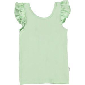 Ranja is a vest in mint green that can elevate any outfit. With its lovely poplin ruffle on the shoulders, Ranja is perfect for parties and everyday wear.