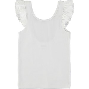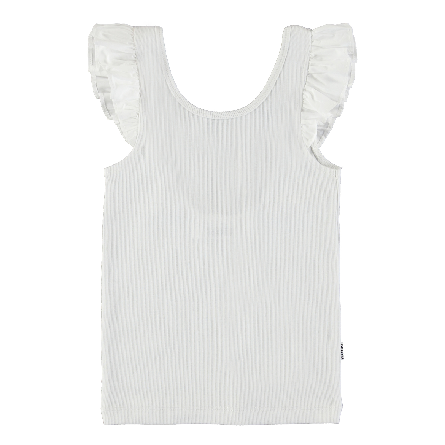 Ranja is a white vest with small ruffle edges on the shoulders.