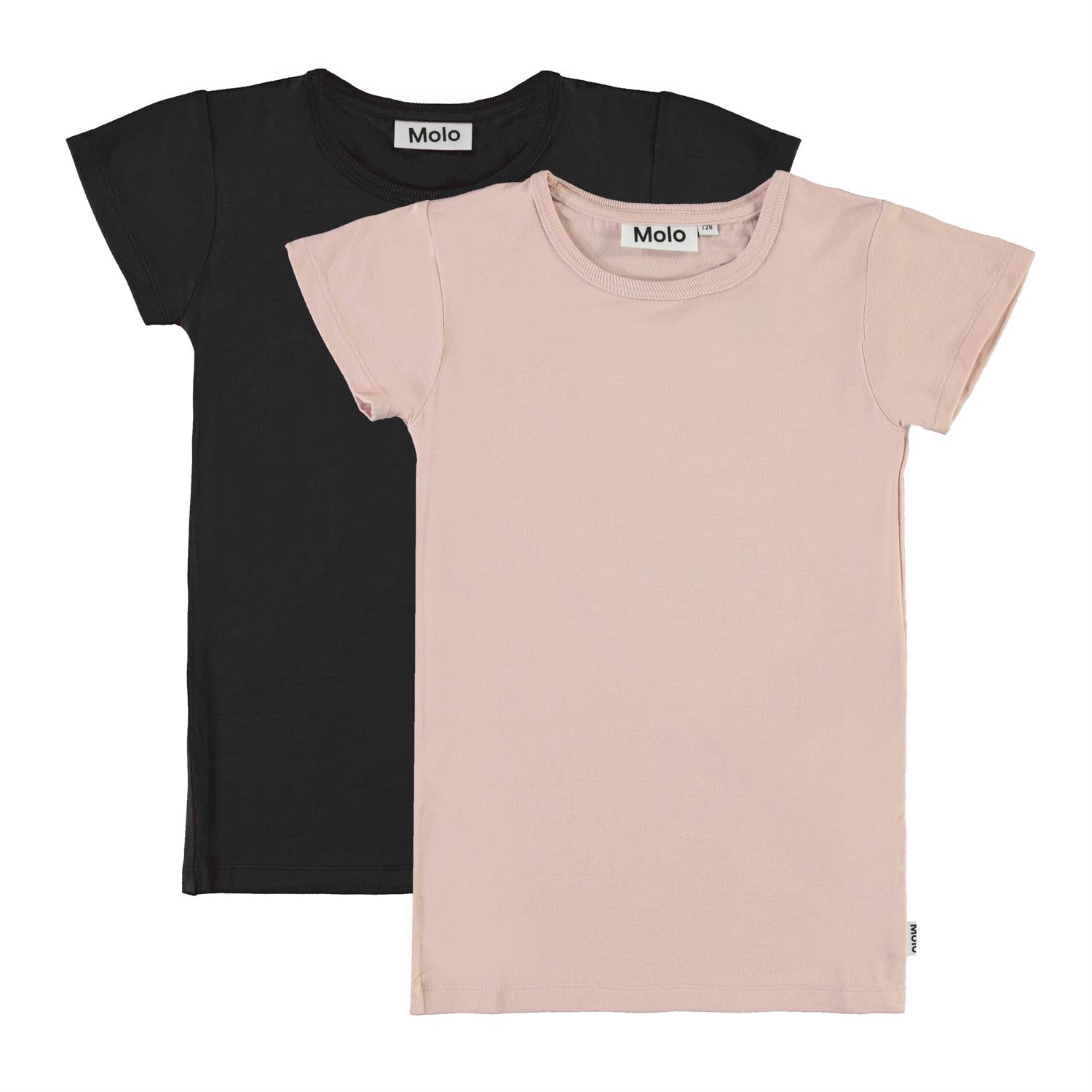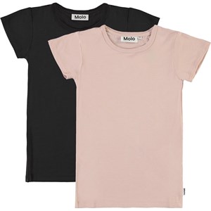 Rasmine is a classic t-shirt with short sleeves and a round neck. This pack includes a black and a rose coloured t-shirt.