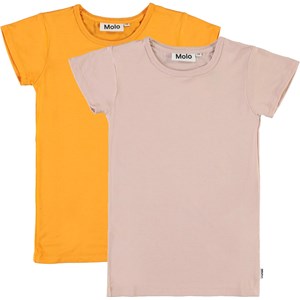Rasmine is a classic t-shirt with short sleeves and a round neck. This pack includes an orange and a rose coloured t-shirt.