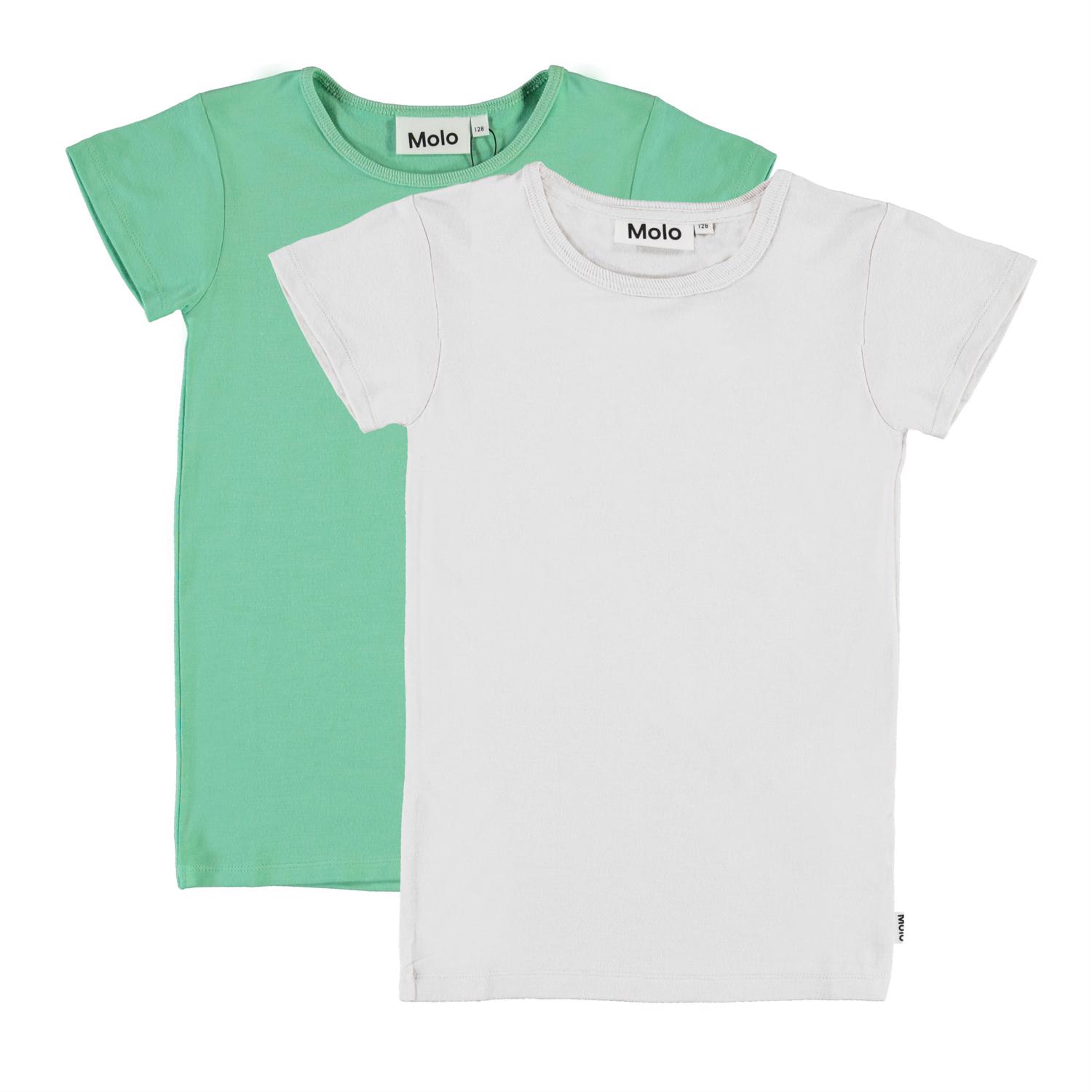 Rasmine is a classic t-shirt with short sleeves and a round neck. This pack includes a white and a pistachio green coloured t-shirt.