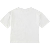 White t-shirt in soft organic cotton with ribbed neckline. The t-shirt has a loose fit with a fabric embroidery shaped like a flower on the front.