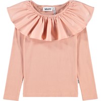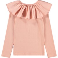 Powder-colored, close-fitting long-sleeved top made of organic cotton rib with a poplin collar and elastic that can be worn off-shoulder or lifted up to function as both a collar and sleeve.