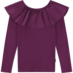 Purple, long sleeve top with poplin collar. The poplin collar is elastic and can be worn either up as a collar or off the shoulders like sleeves. The body of this top is in 100% cotton jersey, and the collar is in 100% cotton poplin. It has long sleeves and is in a slim fit. It's a fun, versatile top for a lot of different occasions.