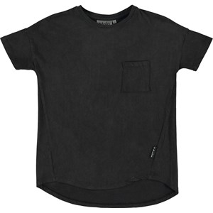 Renessa is a black t-shirt with a round neck, short sleeves and a chest pocket. The t-shirt is in slightly oversized fit.