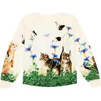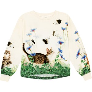 White top in organic cotton in an all over print of curious kittens. The top is in a loose fit and has a rib edge at the neck and sleeves. It is slightly longer in the back.