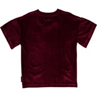 Rennie is a dark red corduroy t-shirt with a v-neck. Wear the t-shirt with matching trousers for a cool, unique look.