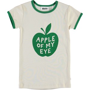 Apple of my heart' is the statement on the green apple that is on the Rhiannon t-shirt. The t-shirt is a white ringer t-shirt with green edges at the neck and sleeves.