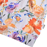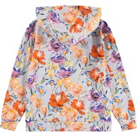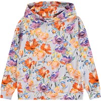 Light purple hoodie made of soft, organic cotton with a print of colorful paper flowers. The hoodie has a loose fit, a kangaroo pocket and long sleeves with ribbed cuffs and waist edge.
