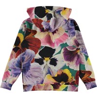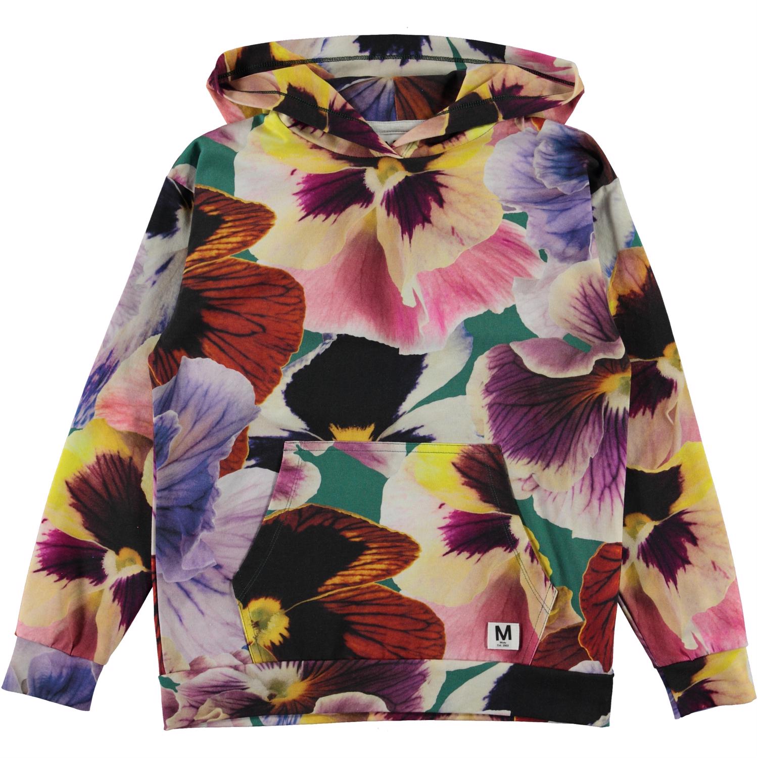 Rhona is a hoodie with a large floral print. It's in a wonderful, lightweight quality and has a pouch pocket on the front.