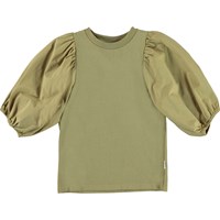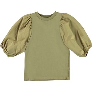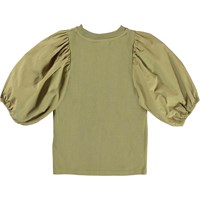 Rica is a green top with voluminous puff sleeves that give it a striking silhouette.