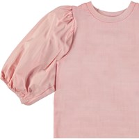 Rica is a pink top with puff sleeves that end at the middle of the arm. The top is in 100% organic cotton.