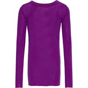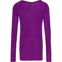 Purple long-sleeved jumper in merino wool with a close-fitting shape, round neckline, and baby lock edges on the sleeves and hem of the jumper. Pair with leggings in the same colour for a complete set.