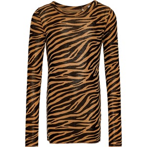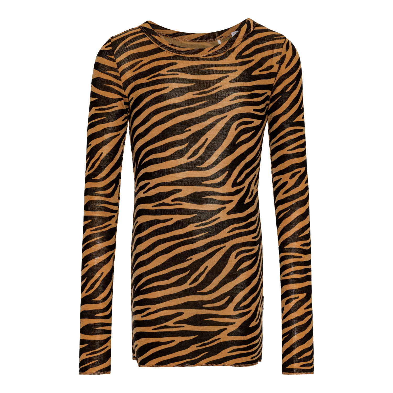 Zebra-striped long-sleeved blouse in merino wool with a close-fitting shape, round neckline, and baby lock edges on the sleeves and bottom of the blouse. Pair with leggings in the same colours for a complete set.
