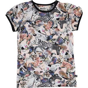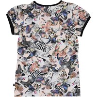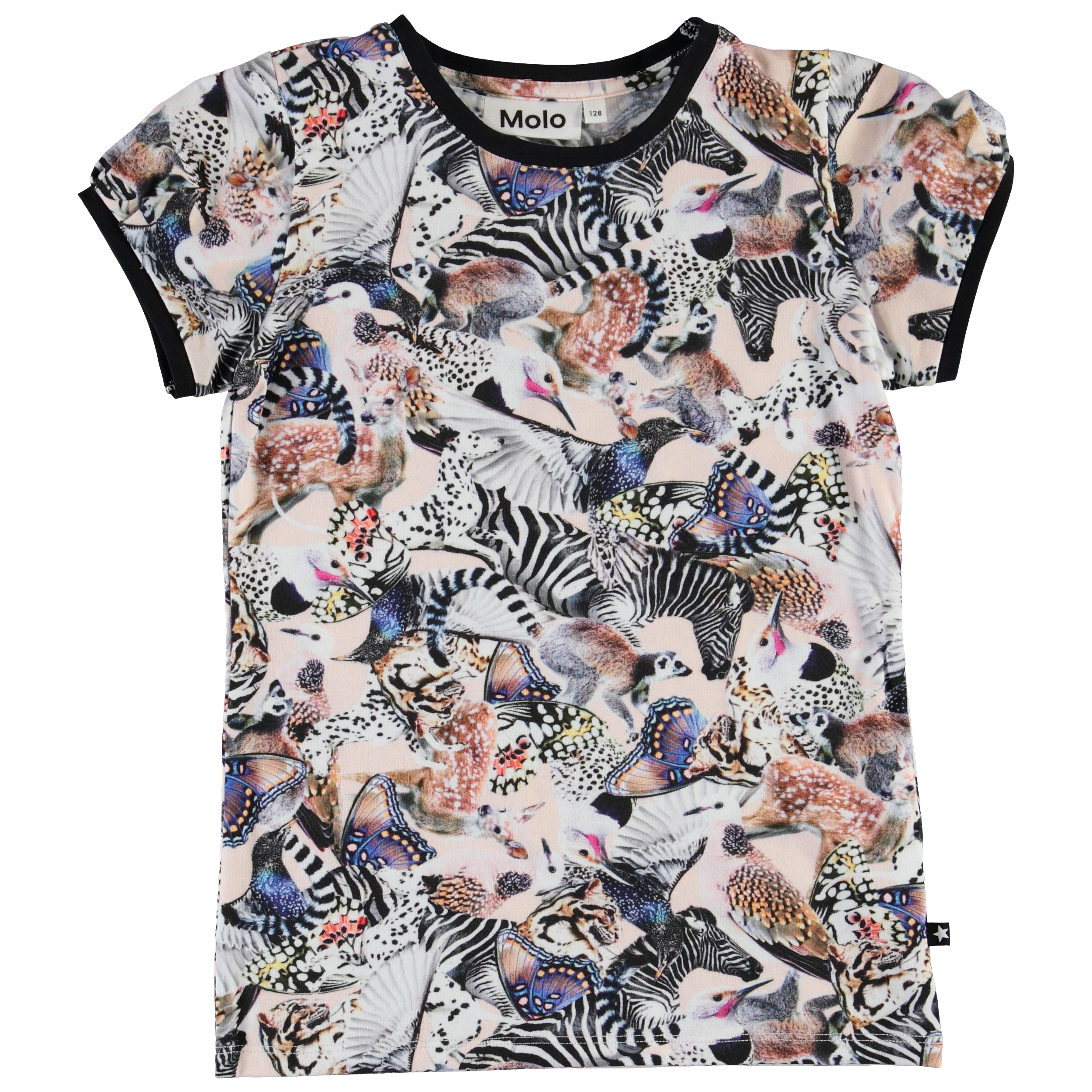 Rimona is a t-shirt with an all-over print of different animals in beautiful colours. The t-shirt has very short sleeves and black edge tape.