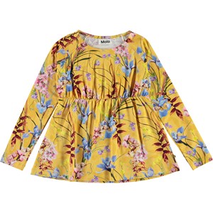 Rina is a long sleeve jersey top in yellow with a beautiful floral print. Rina has an elastic waist, which gives it a lovely, feminine shape.