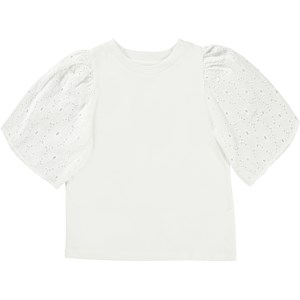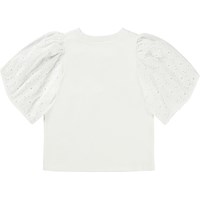 Ritza is a white top with beautiful, broderie anglaise short sleeves. The sleeves are gathered at the top of the shoulders to create an elegant puff effect. Wear the top with the matching Birgitte skirt , for a complete outfit.