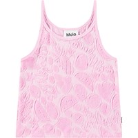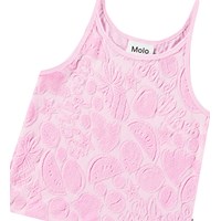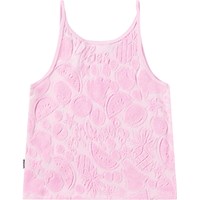 Pink top with a pattern of exotic fruits in soft cotton terry. The top is loose with thin straps and can easily be paired with matching shorts.