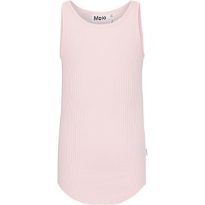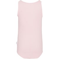 Pink tank top in a soft, organic cotton in a stretchy rib knit. The top is in a snug fit and has a round edge at the bottom.
