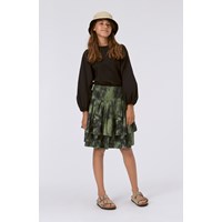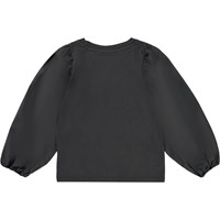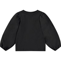 Black top with puff sleeves in cotton poplin. This top is in 100% cotton, has a round neck with a rib edge, long puff sleeves with elastic at the bottom and is in a regular fit.