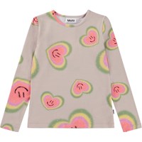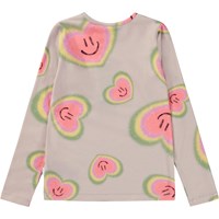 Pink, long sleeve top in an all over aura heart print. Imagine that everything has an aura- people, plants and animals. The print is of aura hearts that are glowing with colours, smiles and love. Aura colours are like the colours of the rainbow and reflect the feelings of our inner spirit. We are willing to open our hearts to all the things we cannot see and believe that there is more to life than what our eyes can see. This top is in 100% cotton jersey, has long sleeves, a round neck and is in a regular fit.