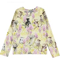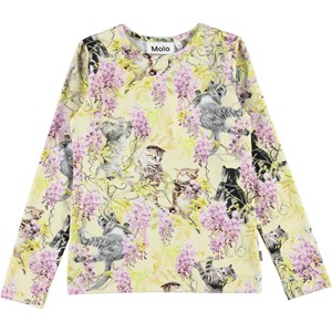 Rose is a long sleeve top with a print of sweet, small cats that are climbing flowers. Rose has a round neck.
