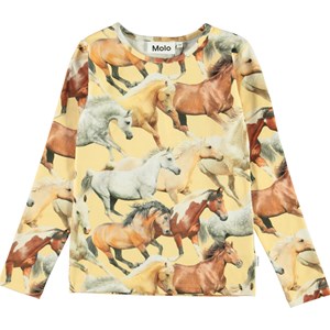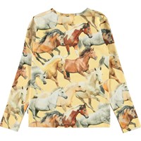 Rose is a long sleeve top in yellow with a horse print. Rose has a round neck.