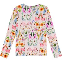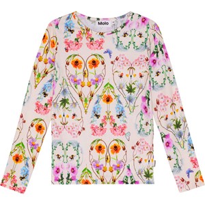Lightweight, long sleeve top in organic cotton. It's in a snug fit and has a round neck. The top has a multi-coloured, all over print of insects and wild, colourful flowers that form hearts.
