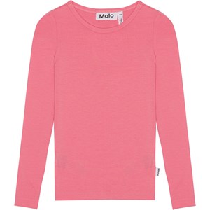 Pink, long sleeve top in a lightweight, stretchy viscose quality. The top is snug and has a round neck.