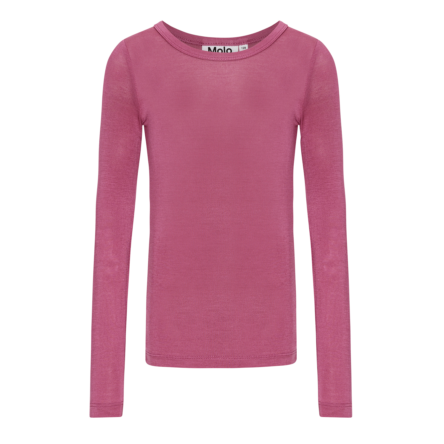Rose long-sleeved blouse in soft viscose with a close-fitting cut and round neckline. Suitable for wearing under a sweater, cardigan, vest or knitwear.