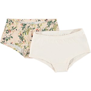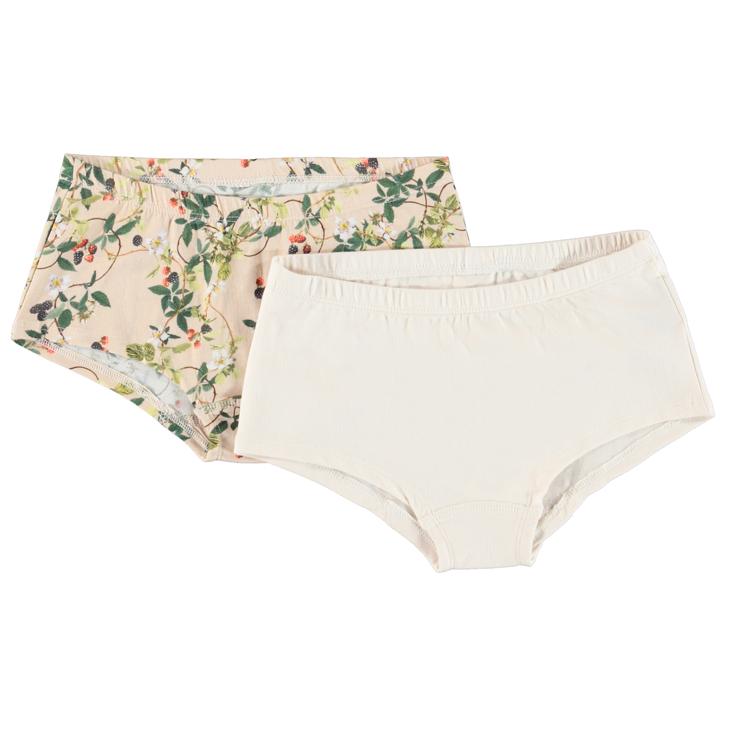 2-pack knickers in a wide fit. One pair is in off white while the other is in rose with a print of blackberry vines.