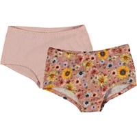 2-pack hipster knickers. This version of our popular 2-pack includes one pair of pink hipster knickers and a pair in a printed floral pattern. The print is of a lot of different flowers like sunflowers and Dahlias in shades of yellow and pink. This 2-pack is in 100% cotton jersey and has an elastic waist. The knickers have stretch for comfortable, unrestricted movement.